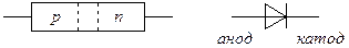 Рис. 2.1. Структура и условное обозначение полупроводникового диода.