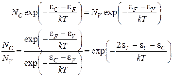Зная эффективные плотности состояний можно определить собственную концентрацию носителей заряда