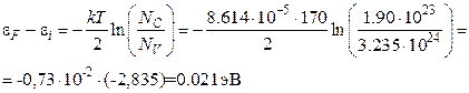 Следовательно, уровень Ферми в собственном полупроводнике лежит выше середины запрещенной зоны на 0.021 эВ.