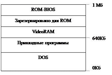 Операционная система DOS может осуществлять прямой доступ к базовой памяти объемом только до 640 Кбайт. Для адресации большего объема памяти используются аппаратные и программные средства в виде дополнительной и расширенной памяти. Дополнительная память (EMS) – память сверх одного Мегабайта и начинается с адреса, соответствующего 1-му Мбайту. Дополнительная память требует драйвера HIMEM.SYS. Схема расширения основной памяти с помощью дополнительной.