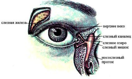 Мьшцы глазного яблока. К глазному яблоку прикрепляются шесть поперечно-полосатых мышц: четыре прямые - верхняя, нижняя, латеральная и медиальная, и две косые - верхняя и нижняя. Все прямые мышцы и верхняя косая начинаются в глубине глазницы от общего сухожильного кольца, фиксированного к клиновидной кости и надкостнице вокруг зрительного канала, и частично от краев верхней глазничной щели. Это кольцо окружает зрительный нерв и глазную артерию. От общего сухожильного кольца начинается мьшца, поднимающее верхнее веко. Прямые мышцы вращают глазное яблоко вокруг двух взаимно пересекающихся осей: вертикальной и горизонтальной (поперечной). Латеральная и медиальная прямые мышцы поворачивают глазное яблоко кнаружи и кнутри вокруг вертикальной оси, каждая в свою сторону, соответственно поворачивается и зрачок. Верхняя и нижняя прямые мышцы поворачивают глазное яблоко вокруг поперечной оси. Зрачок при действии верхней прямой мышцы направляется кверху и несколько кнаружи, а при работе нижней прямой мышцы - вниз и кнутри. Верхняя косая мышца лежит в верхнемедиальной части глазницы между верхней и медиальной прямыми мышцами. Нижняя косая мышца, в отличие от остальных мышц глазного яблока, начинается от глазничной поверхности верхней челюсти возле отверстия носослезного канала, на нижней стенке глазницы, направляется между ней и нижней прямой мышцей косо вверх и кзади. Обе косые мышцы вращают глазное яблоко вокруг передне-задней оси: верхняя косая мышца поворачивает глазное яблоко и зрачок вниз и латерально, нижняя косая - вверх и латерально. Движения правого и левого глазных яблок согласованы благодаря содружественному действию глазодвигательных мышц. Фасции глазницы. Глазница, в полости которой находится глазное яблоко, выстлана надкостницей глазницы, срастающейся в области зрительного канала и верхней глазничной щели с твердой оболочкой головного мозга. Глазное яблоко окружено его оболочкой - влагалищем, или теноновой капсулой, рыхло соединяющейся со склерой. Щель между глазным яблоком и его влагалищем –эписклеральное (теноново) пространство. На задней поверхности глазного яблока влагалище сращено с наружным влагалищем зрительного нерва, спереди влагалище подходит к своду конъюнктивы. Влагалище глазного яблока прободают сосуды и нервы, а также сухожилия глазодвигательных мышц, собственные фасции которых сращены с этим влагалищем. Между влагалищем глазного яблока и надкостницей глазницы, вокруг глазодвигательных мышц и зрительного нерва залегает пронизанная соединительнотканными перемычками жировая ткань - жировое тело глазницы, выолняющее роль эластичной подушки для глазного яблока. Веки. Верхнее и нижнее веки представляют собой образования, лежащие впереди глазного яблока и прикрывающие его сверху и снизу, а при смыкании век полностью его закрывающие. На уровне края глазницы кожа век переходит в кожные покровы смежных областей лица. На границе верхнего века и лба выступает поперечно ориентированный кожный валик, покрытый волосами, – бровь. Передняя поверхность века выпуклая, покрыта тонкой кожей с короткими пушковыми волосами, сальными и потовыми железами. Задняя поверхность века, обращена в сторону глазного яблока, вогнутая. Эта поверхность века покрыта конъюнктивой. В толще верхнего и нижнего век нах