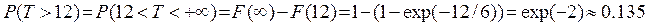 Пример. Установлено, что время горения электрической лампочки (Т) является случайной величиной, распределенной по показательному закону. Считая, что среднее значение этой величины равно 6 месяцам, найти вероятность того, что лампочка будет исправна более года. Решение. Так как