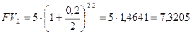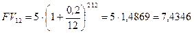 В банк помещена сумма 5 млн. руб. на два года под 20% годовых. Определить накопленную сумму при условии, что накопление процентов производится: а) 1 раз в год; б) 2 раза в год; в) ежеквартально; г) ежемесячно; д) непрерывно а) б) в) г) Таким образом, при начислении процентов: 12% годовых не эквивалентно 1% в месяц, т.е. чем чаще происходит начисление по схеме сложных процентов, тем больше итоговая накопленная сумма. Максимально возможное наращение при бесконечном дроблении годового интервала - это непрерывное наращение. Из формулы (3.10) следует, что если