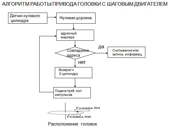 Головки записи-считывания — индуктивные. Головка с нулевым номером располагается снизу диска, первая головка — сверху. - Датчик индекса формирует выходной сигнал на каждый оборот диска. У дисководов 5" он оптоэлектронный, работает на просвет индексного отверстия в носителе. У дисководов 3,5" он магнитный, для него имеется отверстие в металлическом «пятачке» дискеты. - Датчик защиты от записи - оптоэлектронный или механический, формирует выходной сигнал, когда на дискете 5" окошко заклеено, а на дискете 3,5" окошко открыто. - Датчик нулевого тр ека - оптоэлектронный или механический, формирует выходной сигнал, когда головки достигают соответствующего положения (при движении от центра к краю).