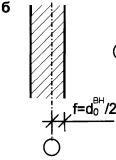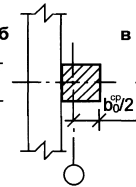 4. Привязка конструктивных элементов к координационным осям. Привязку несущих стен к координационным осям принимают в зависимости от их конструкции и расположения в здании. Геометрическая ось внутренних несущих стен должна совмещаться с координационной осью рис. 6 а; асимметричное расположение стены по отношению к координационной оси допускается в случаях, когда это целесообразно для массового применения унифицированных строительных изделий, например, элементов, лестниц и перекрытий, рис. 6а. Внутренняя координационная плоскость наружных несущих стен должна смещаться внутрь на расстояние f от координационной оси, равное половине координационного размера толщины параллельной внутренней несущей стены d0вн/2 или кратное М, 1/2М или 1/5М рис. 6 б, в. При опирании плит перекрытия на всю толщину несущей стены допускается совмещение наружной координационной плоскости стен с координационной осью, рис. 6 г.