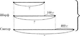 Построением схематического чертежа может быть завершен анализ задачи о массе шерсти, израсходованной на шапку, шарф и свитер. Для этого условимся массу шерсти, израсходованной на шапку, изобразить в виде отрезка произвольной длины. Тогда массу шерсти, из
