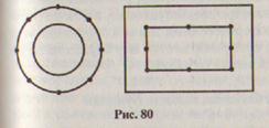 а) Нарисуй на другой фигуре (рис. 80) столько же точек, сколько на первой (точки не пересчитывать). б) Нарисуй, не считая, столько же квадратов и столько же отрезков, сколько на рисунке 81 треугольников. в) У Димы было 28 марок, а у Коли на 7 марок больше. Сколько марок было у Коли? г) У Маши 9 игрушек, а у Риты на 2 меньше. Сколько игрушек у Риты? д) Для детского сада купили 4 зеленых мяча, а красных в 3 раза больше, чем зеленых. Сколько красных мячей купили детям? е) Для детского сада купили 15 красных мячей, а зеленых в 3 раза меньше. Сколько зеленых мячей купили детям? 43. Основные выводы § 8 Изучая материал этого параграфа, мы установили, что любое соответствие S между двумя множествами X и Y есть подмножество декартова произведения этих множеств, т.е. S с X х Y. Выяснили, что соответствия задают также, как и множества вообще. Познакомились с новыми понятиями: - соответствие, обратное данному; - взаимно однозначное соответствие; - равномощные множества; - счетное множество. Установили, что графики взаимно обратных соответствий между числовыми множествами симметричны относительно биссектрисы 1-го и 3-го координатных углов.