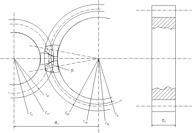 Начальные окружности это окружности, которые контактируют в полюсе зацепления и перекатываются друг по другу в процессе зацепления без скольжения.