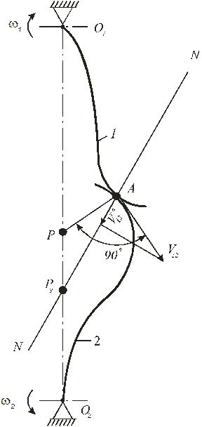 Рассмотрим передачу движения двумя взаимоогибаемыми кривыми (рис. 17).
