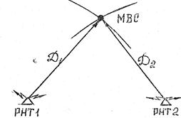 Рис.16. Определение места ВС попересечению двух линий положения