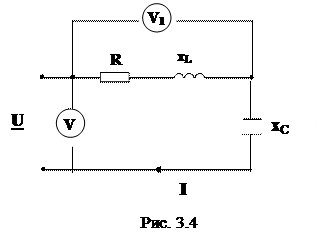 Резонанс – это такой режим электрической цепи, содержащей емкости и индуктивности, при котором общее входное сопротивление или входная проводимость цепи будут чисто активным. В этом режиме цепь потребляет только активную мощность и входные ток и напряжение совпадают по фазе. Различают резонансы напряжений, токов в сложной цепи. Резонанс напряжений – это резонанс при последовательном соединении участков цепи с индуктивным и емкостным характером (рис. 3.1).