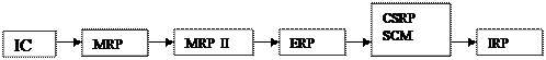 MRP (Material Requirement Planning) – планирование потребности в материалах. FRP (Finance Requirements Planning) получили название систем бизнес-планирования ERP (Enterprise Requirements Planning). MRP II (Manufacturing Resource Planning) – планирование производственных ресурсов. CSRP (Customer Synchjonized Resource Planning) - концепция управления ресурсами предприятия. SCM (Supply Chain Manegment) – управление логистическими цепочками IRP (Intelligent Resource Planning) – перспективная концепция, охватывающая все задачи автоматизации предприятия на базе систем управления знаниями и нейронных сетей.