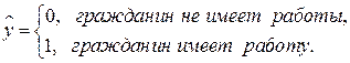 имеющей распределение Фишера с числом степеней свободы 5.3. Модели с фиктивными результативными признаками. Рассмотрим модели с фиктивными результативными признаками, факторные признаки которых могут быть как количественными, так и качественными. Например, при анализе наличия работы у гражданина в зависимости от возраста, образования, семейного положения, доходов остальных членов семьи и т.д., то в качестве результативного признака выступает фиктивная переменная: