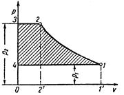 Тема: ЦИКЛЫ ПОРШНЕВЫХ КОМПРЕССОРОВ, ДВС, ГТУ. На рисунке 13.1 в pv-диаграмме изображены процессы, протекающие в идеальном компрессоре. Линия 4-1 изображает процесс всасывания газа, 1-2 – процесс сжатия, 2-3 – процесс нагнетания. Диаграмма 1-2-3-4 называется теоретической индикаторной диаграммой. Теоретическая работа компрессора зависит от процесса сжатия. Кривая 1-2 – процесс изотермического сжатия, 1-2” – адиабатного сжатия и 1-2’ – политропного сжатия.