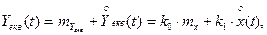 Значення х, які лежать всередині лінійної частини характеристики ланки, проходять без змін (коефіцієнт передачі ланки прийнято рівним одиниці). Всі значення Якщо змінюється mx, то змінюються також і my та Dy, зокрема при збільшенні mx величина my також зростає, наближаючись до b, а Dy буде зменшуватись до нуля, коли mx >>b. Якщо при mx=const звужувати або розширяти криву р(х), змінюючи Dх, то будуть змінюватись як my, так і Dy. При звуженні кривої р(х) величина my буде збільшуватись, прямуючи до mx, коли крива р(х) буде входити в діапазон Таким чином, при проходженні випадкового сигналу через нелінійну ланку закон розподілення щільності ймовірності змінюється, а my та Dy кожна залежать від mх та Dх, тобто принцип суперпозиції не виконується. Крім того, наявність випадкової складової сигналу приводить до згладжування нелінійної залежності між виходом і входом для середнього значення (детермінованої складової). Таким чином, випадкова складова вхідного сигналу створює ефект лінеаризації нелінійної ланки для детермінованої складової сигналу. В цьому випадку навіть релейна система поводить себе як ланка неперервної дії. При збільшенні mх передача ланкою випадкової складової ослаблюється за рахунок того, що ланка насичується детермінованою складовою сигналу. На викладених закономірностях базується наближений метод статистичної лінеаризації НЛС, який полягає в заміні нелінійної системи еквівалентною лінійною щодо реакції на заданий вхідний сигнал. Таким чином, необхідно підібрати таку лінійну еквівалентну ланку, яка з достатньою точністю відтворює вихідний сигнал нелінійної ланки. Приймається, що на вході та виході нелінійної ланки діють відповідно сигнали, які описуються залежностями (1.8), (1.9). Тоді для лінійної еквівалентної ланки можна записати:
