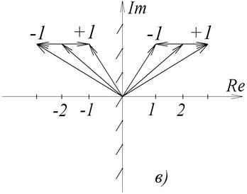 Кореням рівняння (3.33), розташованим в одиничному колі, будуть відповідати корені рівняння (3.37) (рис.3.9,в), які знаходяться зліва від уявної осі. Це можливо, коли При використанні критерія Михайлова в характеристичний поліном підставляють