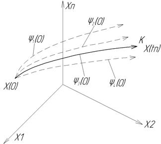 Рис 4.5. Оптимальна система руху систем Сутність метода динамічного програмування можна пояснити на такому прикладі (рис.4.6.). Нехай об’кт необхідно перевести з точки Н в точку К за n кроків, кожний за яких, крім останнього, має