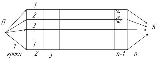 Рис. 4.6. До метода динамічного програмування Значення цього критерія залежить від траекторії руху, і можна визначити приріст Ефективним алгоритмом є отримання розв’язку, починаючи з кінцевої точки К. Для кожної точки