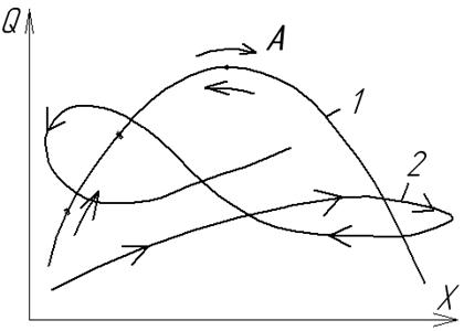 Тоді знак ∆Q залежить від розташування робочої точки відносно екстремума. В таких екстремальних системах виникають усталені пошукові коливання відносно точки екстремуму (рис.5.10) за рахунок того, що логічний пристрій перемикається при змінюванні знаку похідної. Якщо умовно перенести початок координат в точку екстремуму, то для відхилення змінної Q* можна записати (для характеристики з максимумом):
