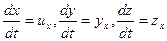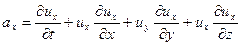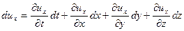 Щоб знайти цю величину слід врахувати, що проекція швидкості ux (як і дві інші проекції) є функцією координат x, y, z, котрі у свою чергу залежать від часу t. Подамо величину dux у вигляді повного диференціалу.