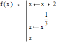 Рис. 1.2. Додавання операторів у тіло програми-функції · заповнити саме нижнє поле введення (поле 2), ввівши туди вираз, що визначає значення, що повертається через ім'я програми-функції, (див.рис.1.3). У наведеному прикладі формальним параметром є проста змінна x, тіло програми включає два локальних оператори присвоєння (див. наступний пункт) і значення змінної z визначає результат, що повертається через ім'я функції в результаті виконання програми-функції.