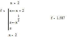 Звернення до програми-функції MathcadДля виконання програми-функції необхідно звернутися до імені програми-функції з вказівкою списку фактичних параметрів (якщо в описі програми присутній список формальних параметрів), тобто