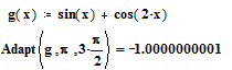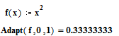 Використовуючи ці програми - функції обчислимо визначений інтеграл від функції f(x) = x2 на відрізку [0,1]. Точне значення інтеграла дорівнює 1/3=0.33333333333333... Звернення до програми-функції Adapt дає результат Перед зверненням до програми-функції Adapt необхідно описати функцію користувача f(x) у вигляді f(x): = x2, тому що ім'я функції f(x) використовується як фактичний параметр.