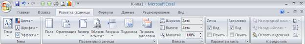 3. На вкладці РОЗМІТКА СТОРІНКИ знаходяться кнопки настройки зовнішнього вигляду надрукованої сторінки, її розмірів, орієнтації і полів. Тут можна задати масштаб і кількість сторінок на листі (група Вписати).