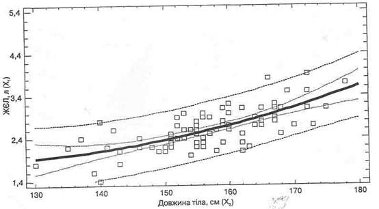 Рис. 12.6. Залежність життєвої ємності легенів (X,) від маси тіла (Х3)