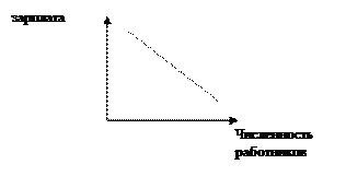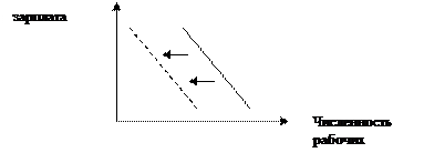 Спрос на труд зависит от многих факторов, в первую очередь от характера функционирования рынков капитала и продукции. Экономика труда изучает факторы, непосредственно относящиеся к работнику. Анализу подвергается изменение численности занятых (работников) под воздействием изменений анализируемого фактора. Рассмотрим зарубежный опыт влияния на спрос изменений размеров заработной платы тех работников, которые востребованы на рынке труда в предположении сохранения на том же уровне используемой техники и технологии, условий предоставления капитала, соотношений между ценой на продукт и спросом на продукт (т.е. при прочих равных условиях). Возможные варианты развития ситуации: 1) при росте ставки заработной платы увеличивается цена на продукт в связи с более высокой стоимостью производства и соответственно снижается спрос на него. Следствием этого становится уменьшение объемов производства и как результат – сокращение масштабов занятости. Такое сокращение занятости называется «эффектом масштаба» (меньшая занятость при меньших масштабах производства). 2) при увеличении зарплата работодатели стремятся уменьшить стоимость производства путем внедрения трудосберегающей технологии. Происходит сдвиг к капитальному способу производства, обеспечивающий уменьшение занятости. Подобное сокращение занятости обусловлено «эффектом замещения» (капитал замещает рабочую силу). При росте заработной платы кривая спроса на работников имеет вид: