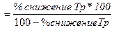 б) % снижения Тр