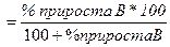 а) % прироста B