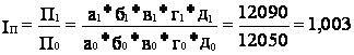 Прибыль увеличилась на 0,3%, что в абсолютном выражении равно разности числителя и знаменателя: DП = 12090 - 12050 = 40 млн. руб. Индекс рентабельности продукции (фактор "а"):