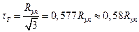 В случае сложного напряженного состояния (например, при совместном действии нормальных и касательных напряжений при изгибе) переход в пластическое состояние, обычно выражают через приведенное напряжение sчed, приравнивая его пределу текучести Ryn, найденному при простом растяжении.