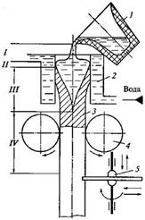Непрерывное литьё металлов и сплавов, процесс получения слитков и заготовок, основанный на равномерном перемещении металла относительно зон заливки и кристаллизации. При этом литейная форма может быть неподвижной или закономерно перемещаться (возвратно-поступательное движение с небольшой амплитудой, вращение, движение по замкнутой кривой ограниченной длины). Непрерывное литье металлов и сплавов в СССР и за рубежом начали применять в промышленности в 1930-х гг.; широкое распространение оно нашло в середине 40-х гг. Н. л. теоретически позволяет получать отливки сколь угодно большой длины; практически длина отливок определяется возможностями литейного производства, требованиями обрабатывающих цехов и организационно-экономическими соображениями. Получение отливок ограниченной длины методом Н. л. иногда неправильно называют полунепрерывным литьём. Равномерные скорости подачи, жидкого металла, его кристаллизации и удаления готовой отливки при Н. л. обеспечивают постоянство состава, строения и свойств металла по всей длине отливки. Путём усиленного отвода тепла (благодаря непосредственному охлаждению металла водой) можно повысить скорость кристаллизации и при правильно выбранной скорости литья создать направленную кристаллизацию, в основном вдоль оси отливки, что обеспечивает получение плотных слитков или заготовок с тонким внутренним строением зерна и равномерным химическим составом. Помимо того, Н. л. по сравнению со штучным литьём, сокращает количество отходов и потерь металла, затраты рабочей силы, литейной оснастки и инструмента.