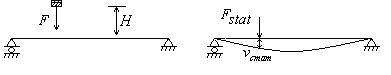 Здесь m -масса груза ( Например, при поперечном ударе по шарнирно-опертой балке 2. При вычислении коэффициента динамичности использовался закон Гука, поэтому если 3. Исследования показали, что при