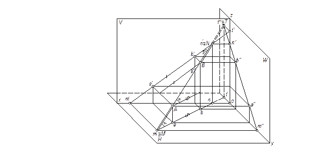 Отрезок, перпендикулярный к одной из плоскостей проекций, проецируется на эту плоскость в точку (рис. 2.5). На двух других параллельных ему плоскостях он изображается в натуральную величину. Эпюром отрезка (как и всякого другого объекта) можно пользоваться без осей проекций. Перемещение оси проекций на эпюре параллельно самой себе без изменения взаимного положения проекций, равноценно параллельному перемещению плоскостей проекций. На эпюре без осей объект не зафиксирован относительно определенных плоскостей проекций. Таким эпюром пользуются в тех случаях, когда надо знать только взаимное расположение элементов изображаемого объекта.