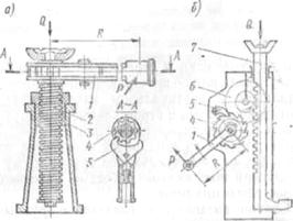 Вспомогательные машины и механизмы Грузоподъемные машины Грузоподъемными машинами поднимают и перемещают различные строительные материалы по вертикали или по пространственной трассе, изменяющейся в горизонтальном и вертикальном направлениях. С помощью этих машин монтируют основные строительные конструкции во всех видах строительства, а в промышленном строительстве — технологическое оборудование. Многие из этих работ сочетаются со строповкой и пакетированием грузов, подтаскиванием грузов к грузоподъемному устройству и другими такелажными работами. Работают грузоподъемные машины чаще всего циклично. Грузоподъемные машины можно разделить на следующие группы: 1. Вспомогательные (простые) машины и механизмы — домкраты, лебедки и тали. 2. Подъемники — машины, перемещающие грузы в ковшах, клетях, кабинах или на площадках, движущихся в жестких направляющих. 3. Краны — наиболее сложные и универсальные грузоподъемные машины для подъема, перемещения но пространственной трассе и подачи грузов и монтажа конструкций. Эти устройства могут иметь ручной, электрический, гидравлический или пневматический привод. Устройства с ручным приводом основаны на том, что человек, прикладывая сравнительно малое усилие — в среднем 16 кгс (160 Н), может поднимать значительный груз. Назначение: используют для подъема груза на небольшую высоту, причем воздействуют на груз снизу. Классификация: · реечные (грузоподъемность до 6 т, высота подъема до 0,3 м); · винтовые (грузоподъемность до 50 т, высота подъема до 0,35 м); · гидравлические (грузоподъемность 50—500 т, высота подъема 0,15—0,2 м);