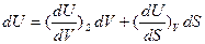 В соответствии с уравнением U=f (V,S);внутреняя энергия является характеристической функцией при независимых переменных V и S. Как и в случае всякой другой функции состояния, дифференциал функции U является полным дифференциалом и, следовательно, может быть представлен как сумма частных дифференциалов по независимым переменным: