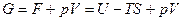 Так же как энтальпия отличается от внутренней энергии на величину рV,так и термодинамический потенциал отличается от свободной энергии на рV т.е. dG=