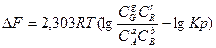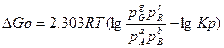 pG, pR,pA,pB – любые взятые в реакцию парциальные давления реагирующих веществ. Уравнение изотермы можеть быть записано также следующим образом ()