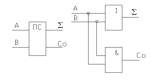Сложение двух одноразрядных чисел.