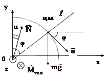 Выводы: Свободное вращение стержня в вертикальной плоскости является неравномерным. Зависимости угловой скорости вращения, скорости его центра масс, а также реакции оси от положения стержня определяются формулами (4.33)-(4.40).