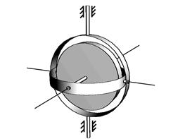Отметим, что Подобный характер движения будет наблюдаться, когда симметричное твердое тело, имеющее одну неподвижную точку и вращающееся вокруг оси симметрии, подвержено действию постоянного по величине внешнего момента силы. При этом его ось вращения сама поворачивается относительно неподвижной оси - такое вращение называется прецессией. Особое распространение в технике получили так называемые уравновешенные гироскопы, когда неподвижной точкой при вращении гироскопа является его центр инерции, а собственная ось вращения гироскопа может свободно поворачиваться в любом из трех взаимно перпендикулярных направлений. Таким образом, собственная ось вращения гироскопа является свободной. Это достигается с помощью так называемого карданова подвеса (рис. 4.9), в котором оси внешнего