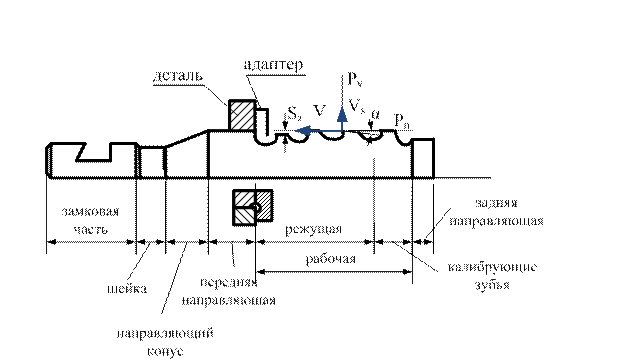 *адаптер служит опорой для затяжки *замковая часть, чтобы тянуть протяжку *протяжный станки вертикальные и горизонтального типа(предпочтение вертикальным) *переднее направление центрирует протяжку.