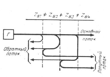 Обратный поток приводит к колебаниям zвх кабеля. Это обстоятельство затрудняет согласование кабеля с аппаратурой и приводит к искажениям в цепи передачи. Попутный поток искажает форму передаваемого сигнала, а также создает помехи в передаче. Особенно страдает телепередача. Для нормальной передачи телесигналов попутный поток должен составлять не > 1% основного.