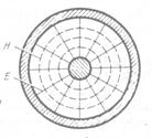КК пропускает широкий спектр частот. Это обеспечивается конструктивными особенностями по нему эффективно передаются вч спектр, а низкочастотный спектр передается неэффективно. Рассмотрим эл. и магн. поля раздельно.