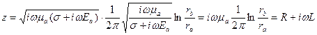 Вторичные параметры передачи коаксиальных цепей. КК используется на f > 60 кГц. R < wL, G < wC.