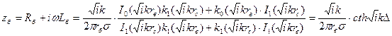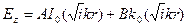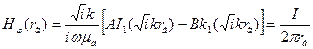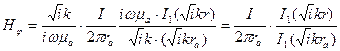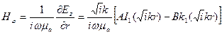 А и B – постоянные интегрирования. Io и K0 – видоизмененные цилиндрические функции нулевого порядка соответств. первого и второго родов от комплексного аргумента. А и B находим исходя из того, что Ez внутри проводника с увеличением r. Поэтому второй член уравнения (а) уменьшится с увеличением аргумента, не соответствует длине явления. Поэтому В принимается равной нулю.