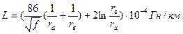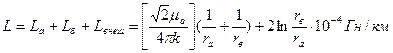 Для определения общей L КК необходимо знать кроме внутр. L проводников также внешнюю межпроводниковую Lвнеш. Она обусловлена межпроводниковым магнитным потоком Ф и может быть определена по формуле: